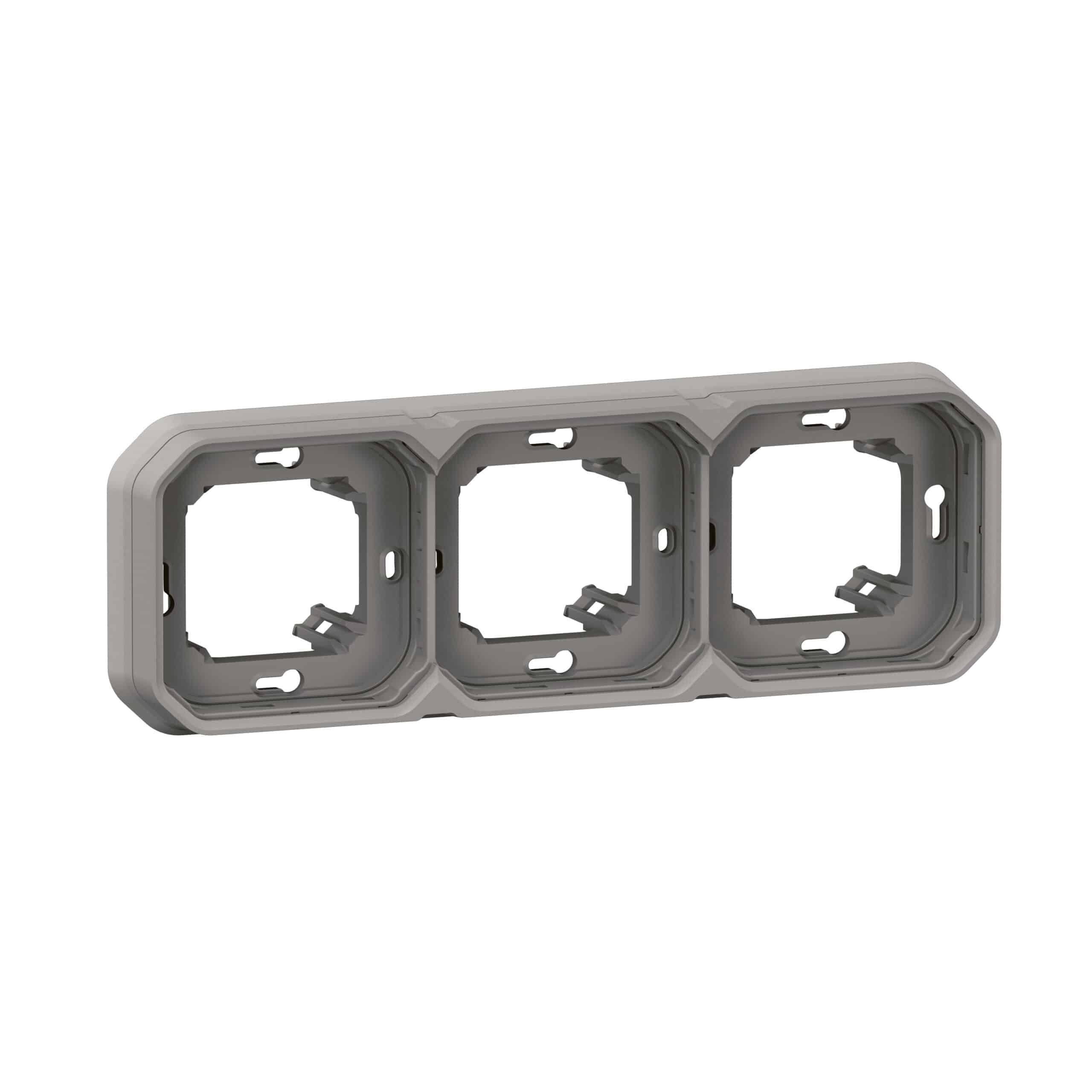 SUPPORT PLAQUE ENCASTRE 3 POSTES MONTAGE HORIZONTAL/VERTICAL PLEXO GRIS (LEGRAND)
